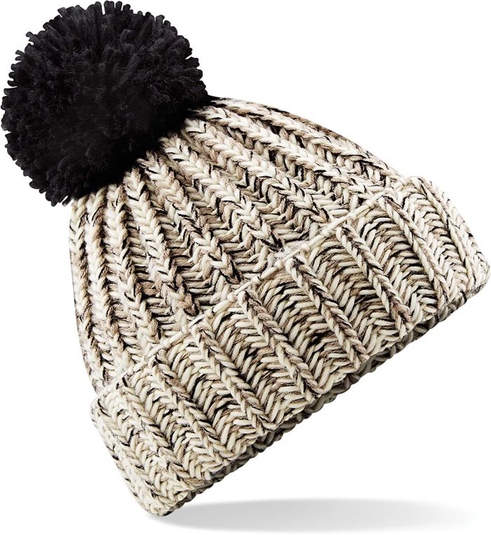 Bonnet à pompon en maille torsadée - Oatmeal Twist composé de 100% acrylique Soft-Spun, étiquette détachable tearaway, look "fait-main", bande thermique Suprafleece™, grosse maille, avec revers et pompon. L'article Bonnet à pompon en maille torsadée - Oatmeal Twist bénéficie de tarifs dégressifs par quantité et peut être personnalisé en option
