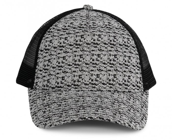 Casquette Trucker KP171 - 5 panneaux White / Black Heather / Black 465 g/m² composée en 100% polyester. Casquette style trucker 5 panneaux. Panneau avant en polyester tricoté, aspect maille des chaussures de sport. Mailles du filet 100% polyester. Languette de réglage en plastique. La casquette Trucker KP171 - 5 panneaux White / Black Heather / Black est vendue à l'unité mais bénéficie de tarifs dégressifs par quantité et peut être personnalisée en option. La casquette Trucker KP171 - 5 panneaux White / Black Heather / Black à l'unité