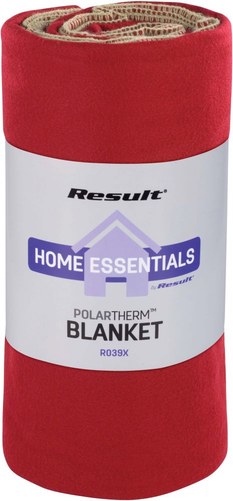 Couverture POLARTHERM™ - Red composé de 100% polaire. Couture beige contrastée sur le pourtour. L'article Couverture POLARTHERM™ - Red bénéficie de tarifs dégressifs par quantité et peut être personnalisé en option