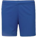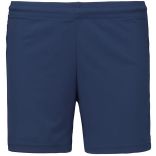 Short de jeu femme PA1024 - Sporty Navy, 140 grs/m², composé en 100% polyester. Tissu léger à séchage rapide. Ceinture élastiquée avec cordon de serrage. Finition points de recouvrement sur les découpes. Finition double aiguille au bas du vêtement. Le short de jeu femme PA1024 - Sporty Navy est vendu à l'unité mais bénéficie de tarifs dégressifs par quantité, et peut être personnalisé en option. Le short de jeu femme PA1024 - Sporty Navy à l'unité