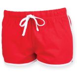 Short Femme Rétro SK069 - Red / White 220 g/m² composé en 100% coton jersey. Biais de finition et cordon de serrage contrastés. Poches latérales le long des coutures. Taille élastiquée. Le short Femme Rétro SK069 - Red / White est vendu à l'unité mais bénéficie de tarifs dégressifs par quantité et peut être personnalisé en option. Le short Femme Rétro SK069 - Red / White à l'unité