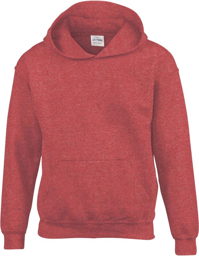 Sweat-shirt enfant à capuche Heavy Blend™ 18500B - Heather Sport Scarlet Red 270 g/m² composé de 50% coton / 50% polyester. Molleton interieur gratté pré-rétreci. Fil "Air-Jet" pour une surface plus douce et anti-boulochage. Manches droites. Bord-côte 1x1 avec élasthanne. Poche kangourou. Capuche doublée. Finitions double couture. Le sweat-shirt enfant à capuche Heavy Blend™ 18500B - Heather Sport Scarlet Red bénéficie de tarifs dégressifs par quantité et peut être personnalisé en option. Le sweat-shirt enfant à capuche Heavy Blend™ 18500B - Heather Sport Scarlet Red à l'unité