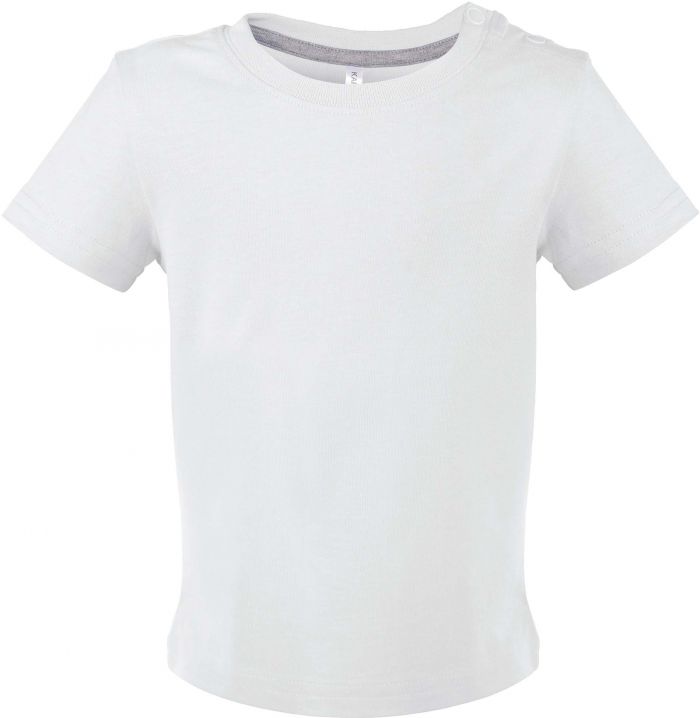 T-shirt bébé manches courtes K363 - White 180 grs/m² 100% coton. Lavage aux enzymes. Encolure ronde fermée par 2 boutons pression épaule et bande de propreté contrastée. Finition double aiguille bas de manches et de vêtement. Le t-shirt bébé manches courtes K363 - White est vendu à l'unité mais bénéficie de tarifs dégressifs par quantité et peut être personnalisé en option. Le t-shirt bébé manches courtes K363 - White à l'unité