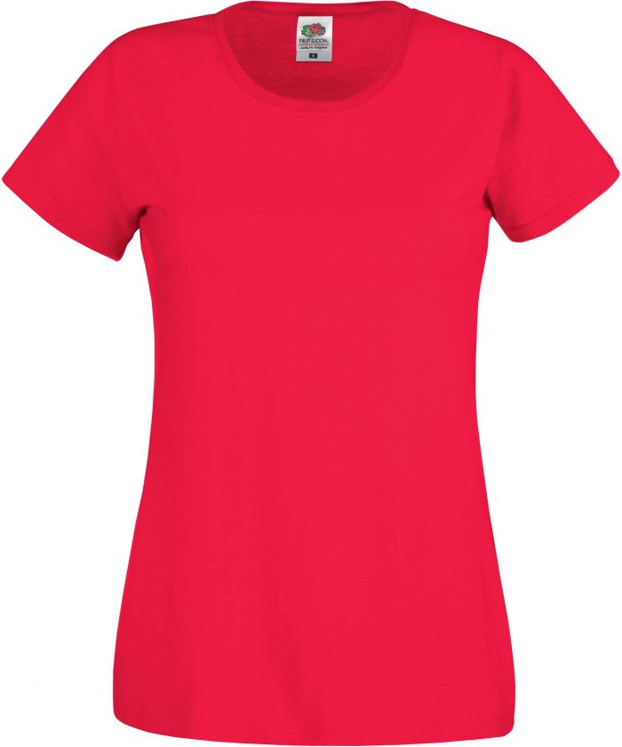 T-shirt femme manches courtes Original-T SC61420 - Red 160 grs/m² composé en 100% coton, Col rond avec bande de propreté de même tissus. Coupe féminine cintrée. Le t-shirt femme manches courtes Original-T SC61420 - Red est vendu à l'unité mais bénéficie de tarifs dégressifs par quantité et peut être personnalisé en option. Le t-shirt femme manches courtes Original-T SC61420 - Rouge à l'unité
